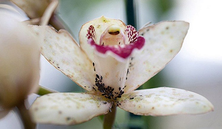 - всеки ден орхидеите се изследват внимателно, след като забелязват листни въшки, те повтарят процедурата, добавяйки малко калиев перманганат към разтвора.