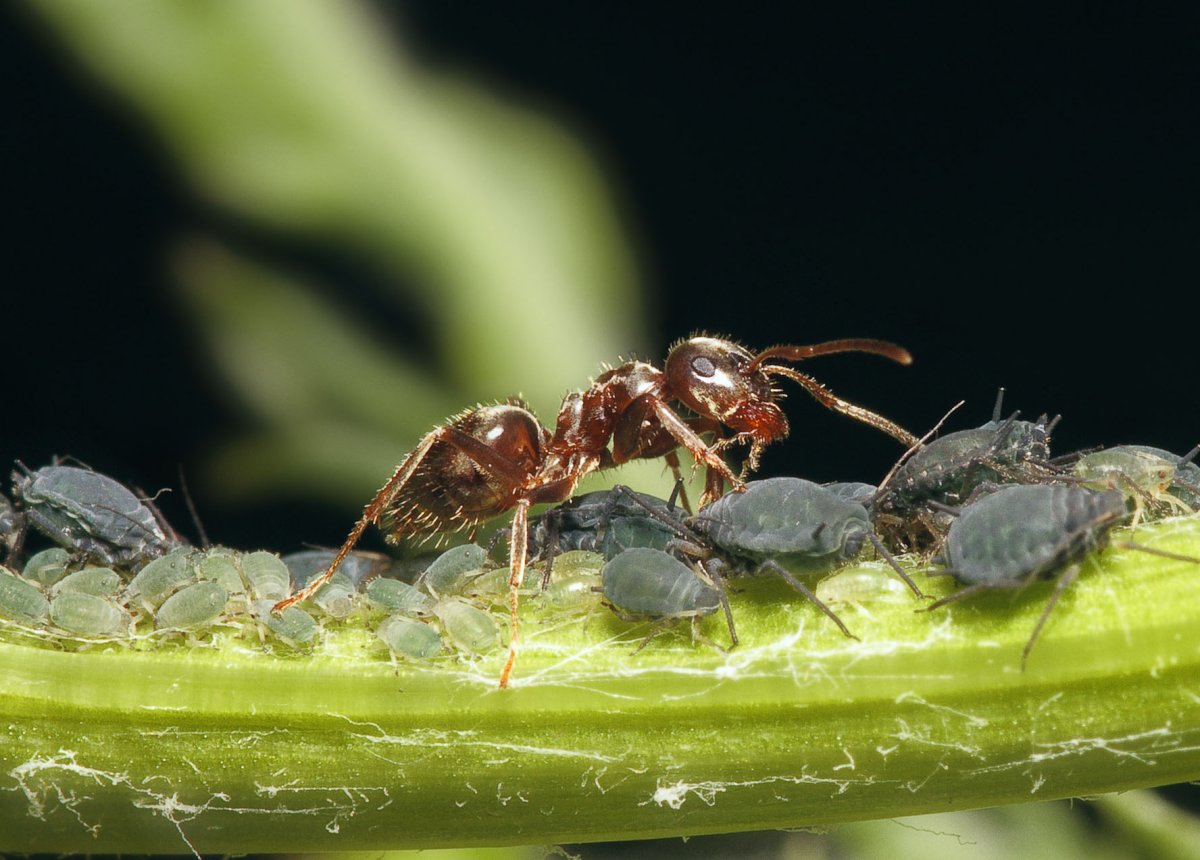 Мравките допринасят за активното разпространение на листни въшки. Те абсорбират сладкия сироп, който вредителите произвеждат. Мравките буквално отглеждат листни въшки и се грижат за яйцата им. Те също така предпазват културата от други паразити и са близо до източника на храна през цялото време.