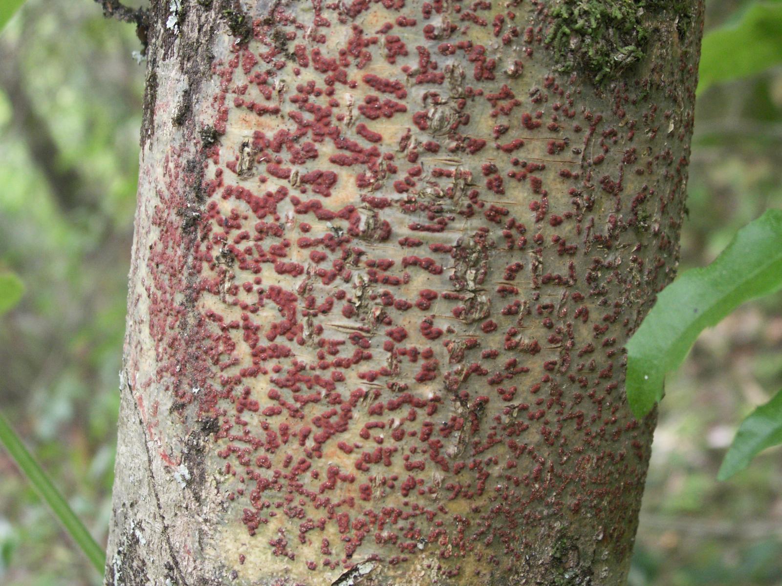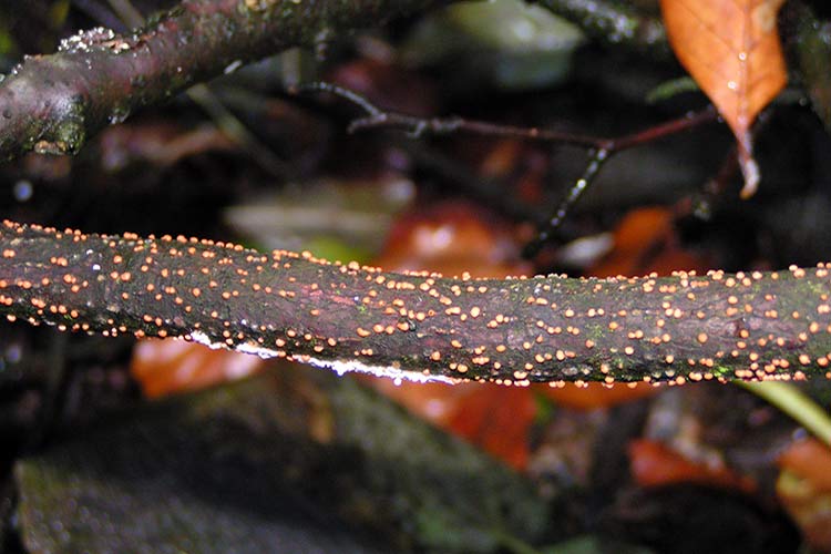 Болестта допринася за некротична некроза на кората. По време на вегетационния период листата и издънките стават кафяви и изсъхват. На повърхността на засегнатите области на кората се появяват множество тухленочервени спорообразни подложки с диаметър до 2 mm. След това те потъмняват и изсъхват. Развитието на гъбата допринася за смъртта на кората и луста на отделните издънки. Инфекцията продължава в кората на засегнатите издънки.