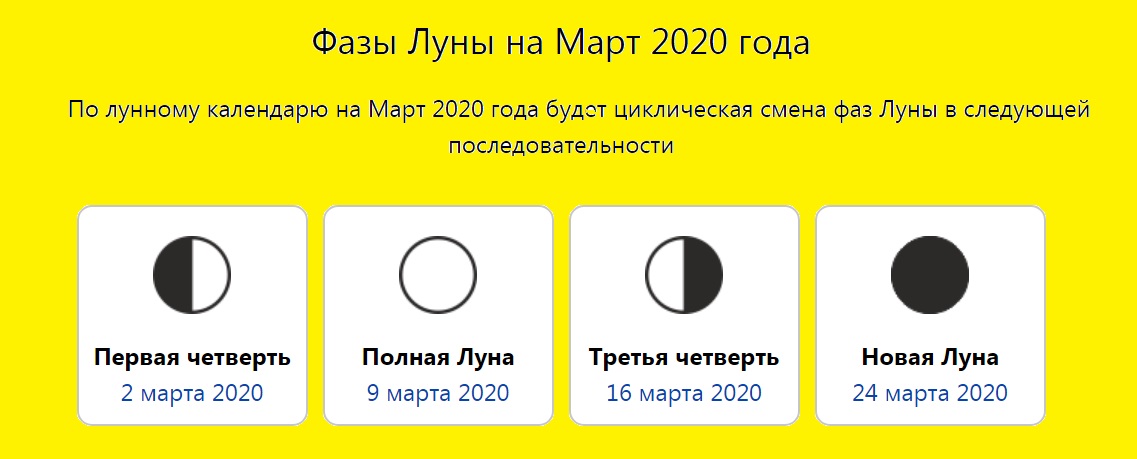Лунен календар за март 2020 г.