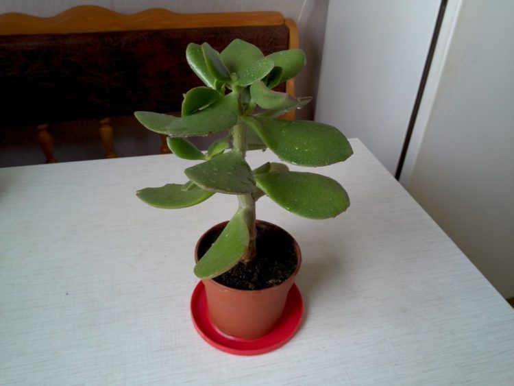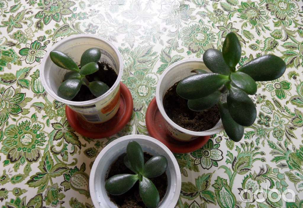 Веднага след като малките корени станат видими, листът се засажда в малка чаша с почва за по-нататъшно отглеждане. Месец по-късно младата дебела жена се прехвърля в по-голяма саксия с диаметър не повече от 9 cm.