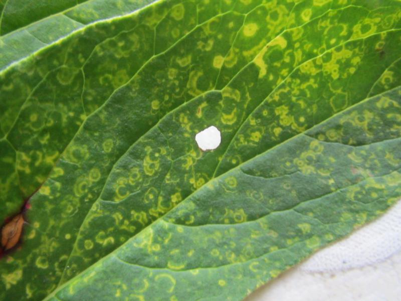 - на листните плочи ще се появят пръстеновидни петна;