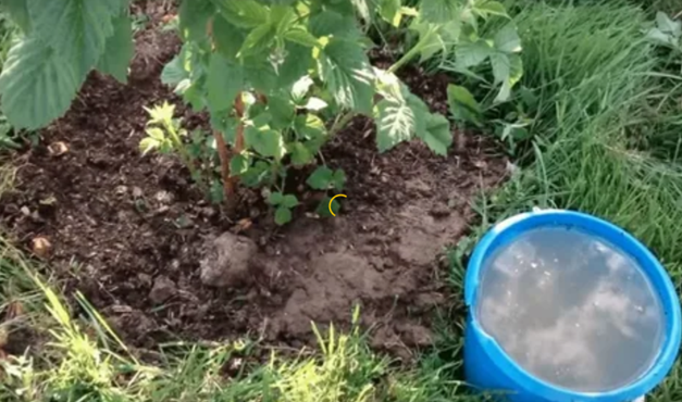 - в основата на храста се изкопава в кръг бразда с дълбочина 10-15 см и се полива обилно с вода;