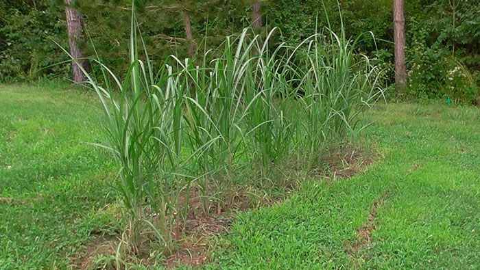 Гигантът Miscanthus - сорт, отглеждан от животновъди, е сложно хибридно растение. Високите изправени издънки достигат 3 метра, увисналите листа са тесни - широки само 25 мм.