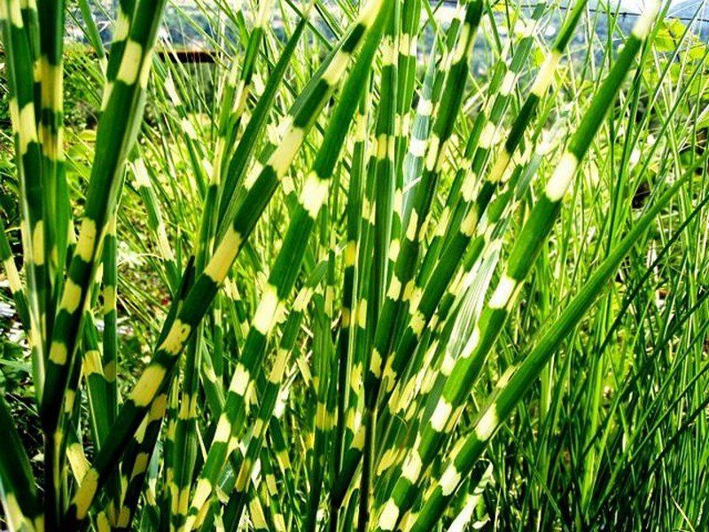 Мискантус Малка зебра. Името се дължи на външния вид на зърнените култури. На всеки лист има напречни бежови ивици. Височината на растението варира в зависимост от местообитанието - от 2,5 до 3 метра.