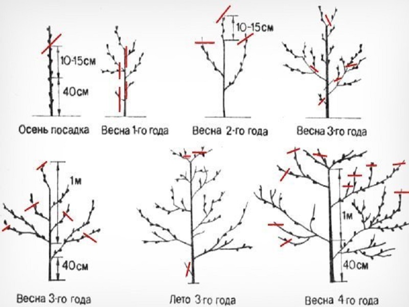 Подрязването на кайсия се извършва два пъти, първият път през пролетта и вторият през есента.Това лечение е за здравословни цели, а също така помага за формирането на правилната и красива корона на плодното дърво.