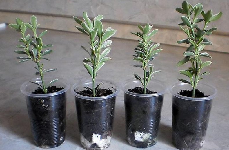 - всяка отрязана клонка трябва да бъде внимателно обработена с въглен, така че кореновата сфера да се развива активно. Вкореняването е най-добре в специализирани торфени саксии;