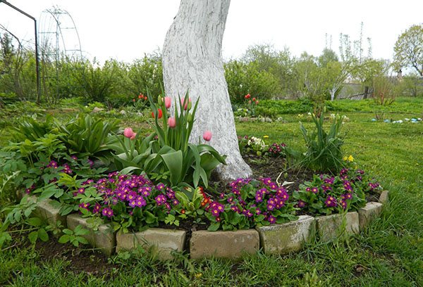 - Ако короната е рядка и пропуска светлина, тогава под дървото се засаждат настурция, маргаритки или теменужки.