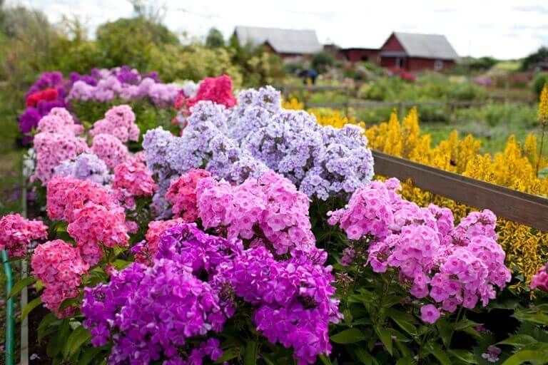 Флоксите са непретенциозни многогодишни растения от семейство Синюхови. Има няколко разновидности на цветето, сред които паникуларните видове се считат за най-подобни на хортензия. Флоксите имат невероятен аромат и се предлагат в голямо разнообразие от цветове: лилаво, червено, бяло, розово. Съцветията се състоят от голям брой малки цветя, които не надвишават 2-4 сантиметра в диаметър. Според периода на цъфтеж флоксите са пролетта, началото на лятото и лятото-есента.