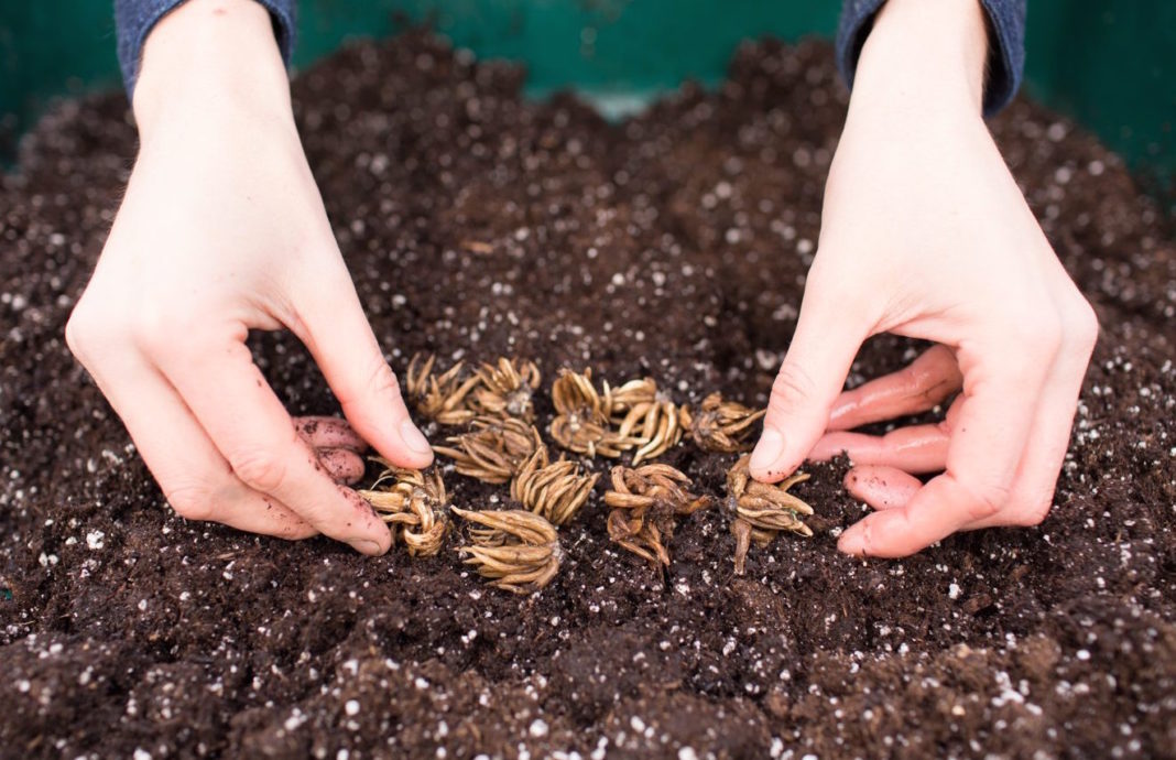 Вкъщи се засаждат едновременно няколко възли в широка саксия. Те се държат във вода за един ден. На дъното се полага дренаж: експандирана глина, черупки от яйца, трошен камък. След това добавете слой плодородна почва, грудки, които се поръсват с пръст. Необходимо е да се полива и да се следи температурата, която не трябва да надвишава +12 ° C. Ще трябва редовно да навлажнявате земята.