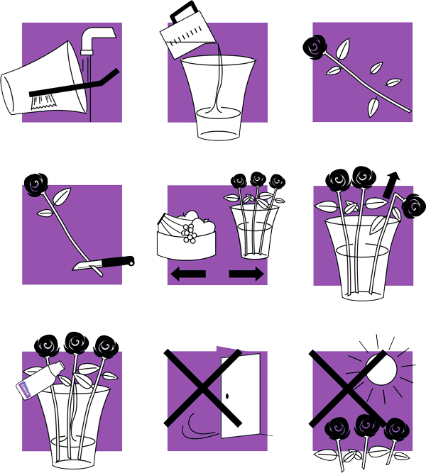 - след завръщането си у дома, поставете растенията във ваза за няколко часа, не отстранявайте опаковъчното фолио;