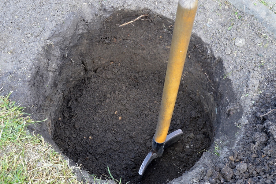 - Запълнете дупката с подготвена плодородна почва или естествен чернозем.