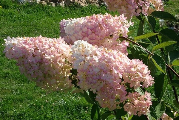 В началото цветята са кремообразни, които след това се превръщат в бели. С развитието на растението те придобиват розов оттенък, в края на цъфтежа пъпките са боядисани в зеленикаво-червени тонове. Напълно хортензия цъфти само за 4-5 години.