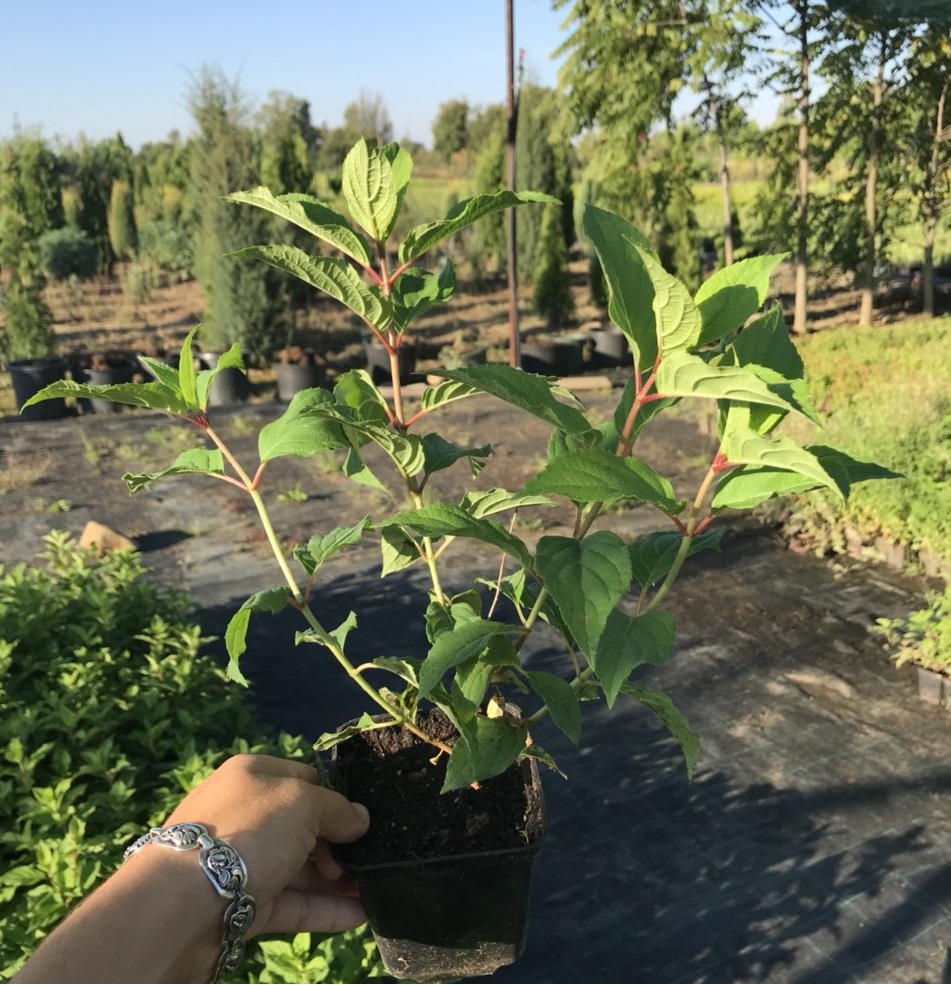 След това трябва да подготвите посадъчен материал, закупен от специализиран магазин или градинарско общество. Обикновено се продава в контейнери, корените са покрити в земята. Ако разсадът е здрав, тогава не трябва да има повреди, пукнатини или петна по младата кора. По-добре е да засадите млада хортензия не по-стара от 5 години. Растението не трябва да има повече от 4-5 пъпки.