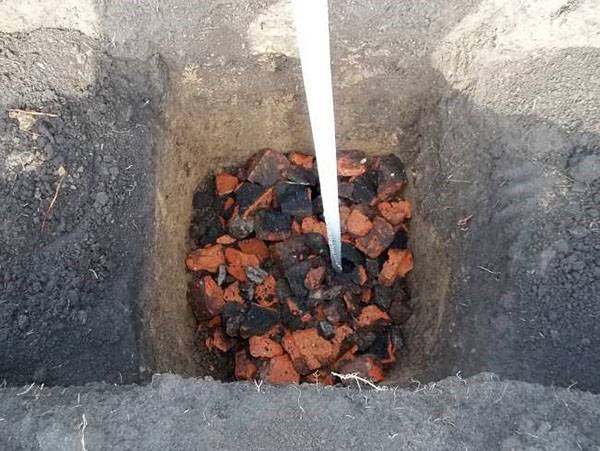 - Поставете дренаж на дъното на дупката.Счупената тухла или голяма експандирана глина е идеална.