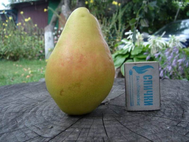 Масата на узрелите плодове достига 180-200 гр. Пулпът на крушата е нежен и сочен, светложълт на цвят. Вкусът е сладък с лека киселост (съдържание на захар е около 8%). Миризмата не е силна. Гладката кожа е покрита с малки точки. Ако крушите са узрели на открито слънце, тогава кожата може да придобие "дъбена" сянка.