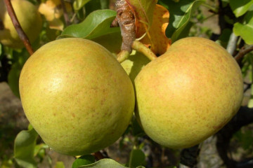 Плодовете обикновено са с крушовидна форма, големи. Теглото на всеки плод варира от 170 до 250 грама. Кожата е тънка с тъмни петна. Цветът на плодовете е жълт с румени страни. Някои подвидове може да са с червен цвят.