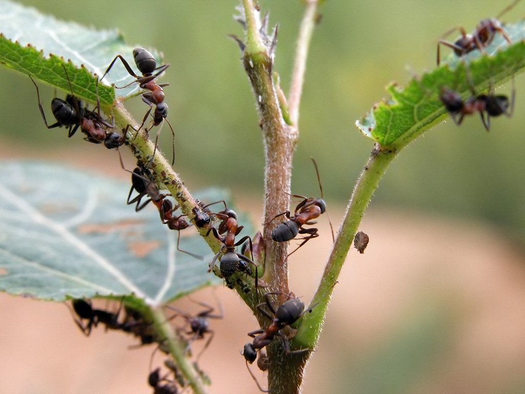 - Листни въшки. От телата на тези вредители се отделя специална течност, която е любим деликатес на мравките. В тази връзка насекомите имат вид симбиоза: мравките се хранят с течността, която отделят листните въшки, а в замяна ги защитават и насърчават размножаването.