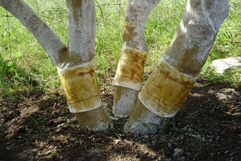- Ловен пояс. Този метод от десетилетия е един от най-надеждните в борбата с мравките. Трябва да го поставите на дърво на няколко сантиметра над земята в началото на пролетта. Насекомите ще се изкачат по ствола на дървото и повечето от тях ще залепнат и ще умрат. Можете да премахнете лекарството, когато вредителите изчезнат напълно.