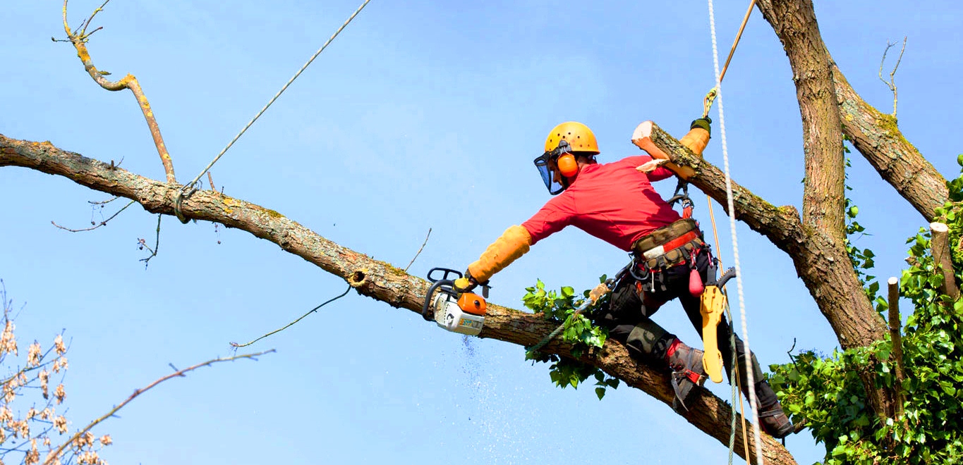 Подрязване на големи клони по стари дървета