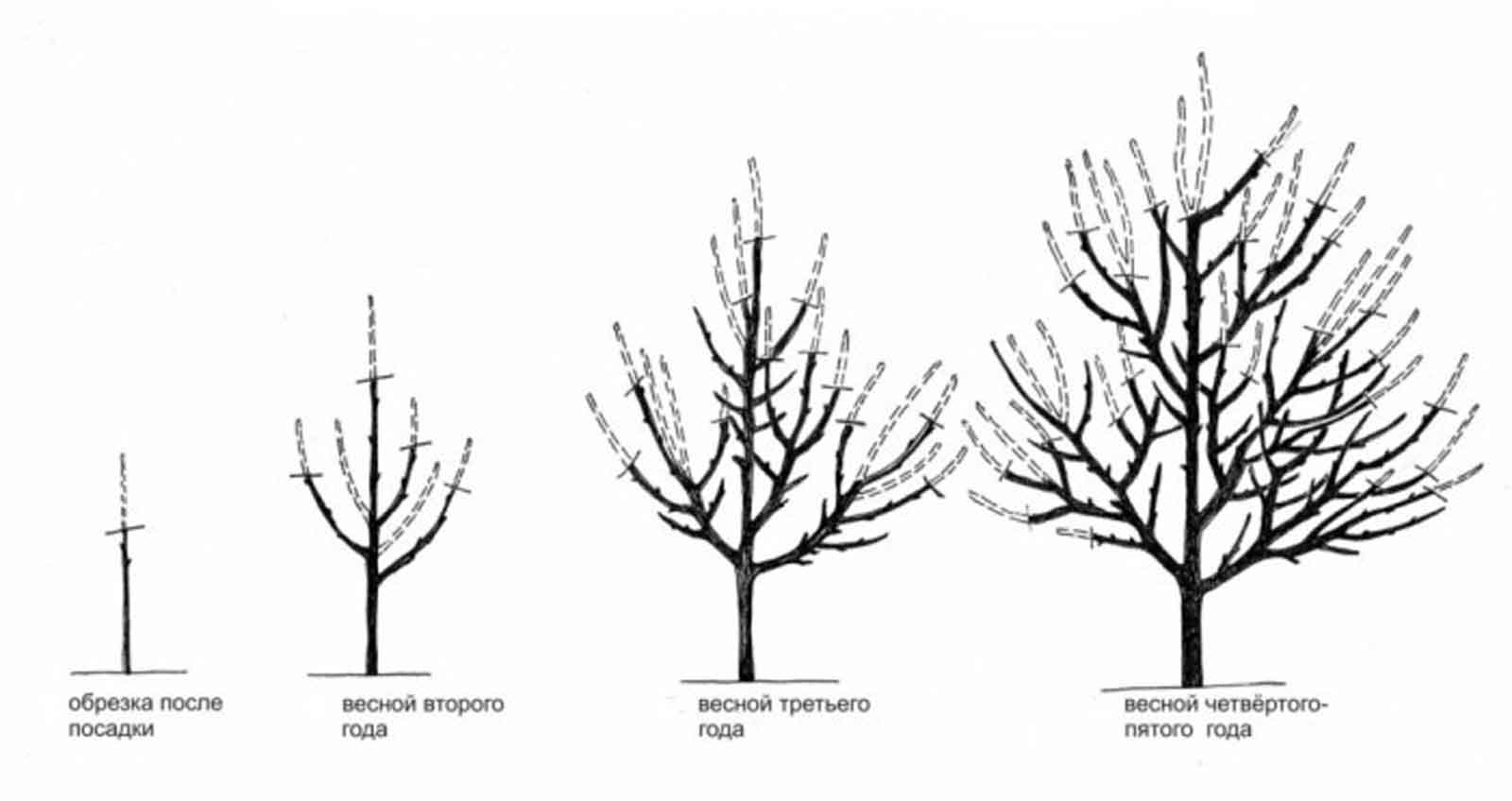При резитбата и оформянето на короната на дърветата трябва да се има предвид, че овощните култури имат пет етапа на живот: