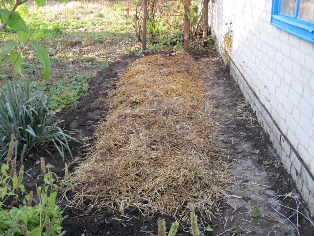 - След засаждането лехите се покриват със слама, листа или смърчови клони, когато падне сняг, те се покриват допълнително със сняг.