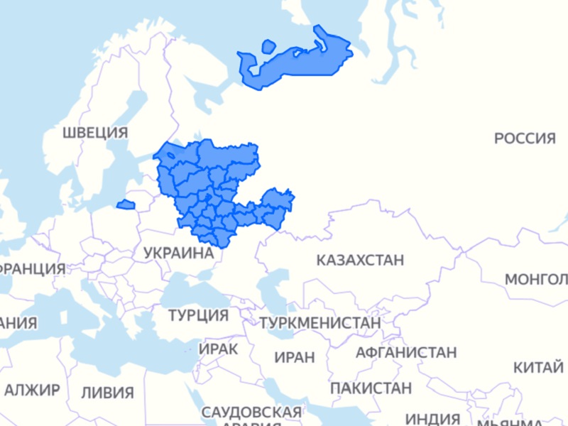 Препоръчителни региони на картата: Северозападна, Централна, Средна Волга.