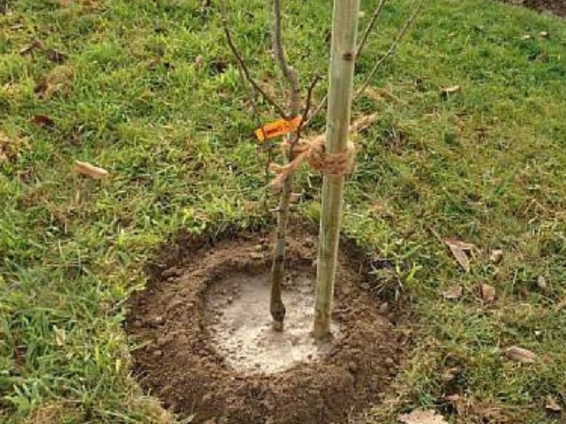 - Инсталирайте колче, което да поддържа сигурно младото дърво.