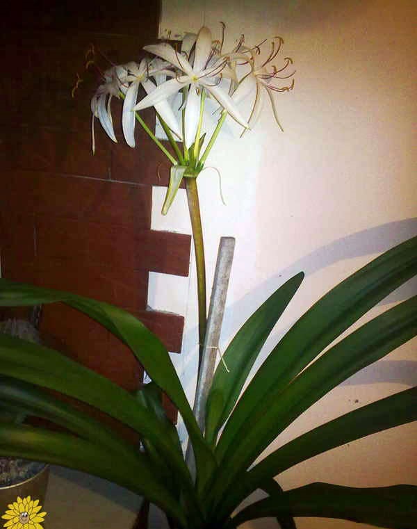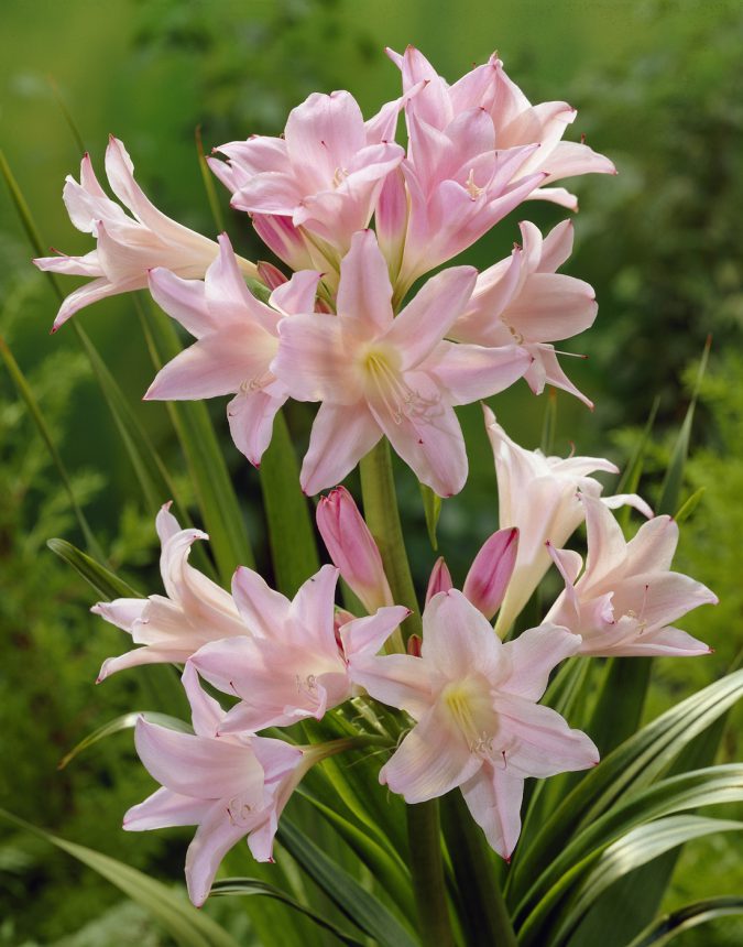 Дръжките са високи, голи, зелени, образуващи чадъри с 12-15 малки цветя, боядисани в светло розово или горещо розово. Цветето на кринум може да се размножава с помощта на дъщерни луковици.