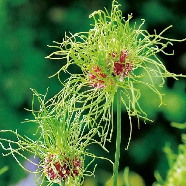 Това е най-необичайният вид декоративен лък. Височината на стъблото на Hair allium е около 130-140 cm.