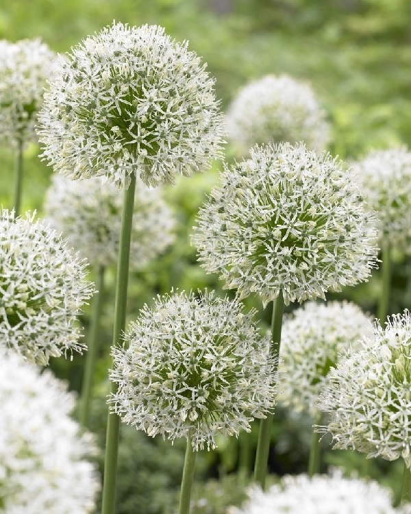 Allium White Cloud има и друго име - гроздов лук. Благодарение на силното, сякаш леко подуто стъбло и големите бели сферични съцветия и всъщност наподобяващи облак, той ще се превърне в истинска украса на градината. На външен вид растението е малко като белите цветя на алиума Mount Everest - друг сорт декоративен лук.