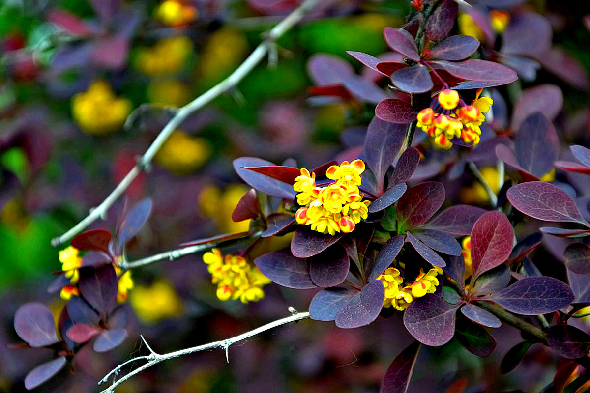 Характерният пъстър цвят се появява на бербериса от момента, в който младите издънки започват да растат. Едногодишните разсад придават на растението екзотичен вид.