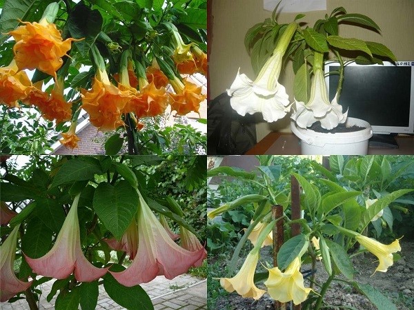 Brugmansia, "тръби на ангели", архангелското цвете е обикновен храст, цветята на който имат силен аромат. Няколко века по-рано от цветя се правят тинктури или букети, които са опияняващи. Благодарение на работата на животновъдите, в наше време са били отглеждани сортове, които не увреждат тялото и са украса на всеки личен парцел.