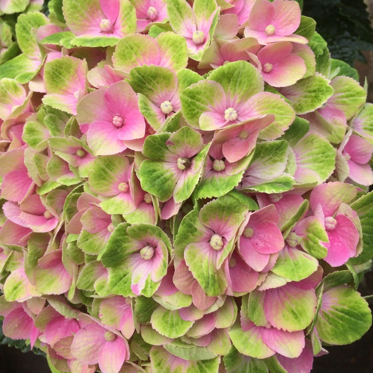 Бушът се счита за компактен, достига ширина от 90 см и не расте повече от 1 м височина. Този сорт принадлежи към хамелеоните, цветята променят цвета си, когато нивото на киселинност се промени. През пролетта те са лимоненозелени, след това се превръщат в розов оттенък.По-близо до есента, съдът по краищата придобива зелен кант.