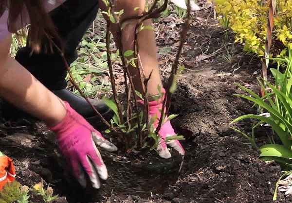 - необходимо е да добавите градинска пръст към подготвената дупка, смесвайки я с тази в саксията, така че растението да се адаптира по-бързо към ново място;