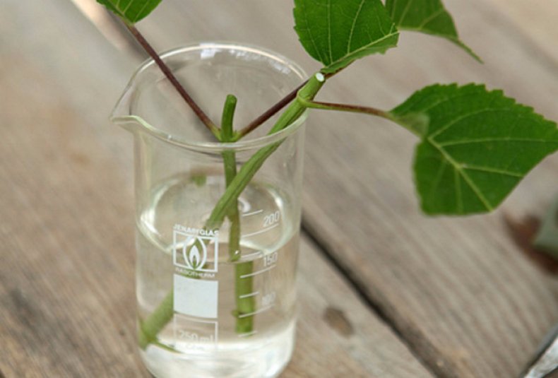 След това резникът трябва да се третира със стимулатор на растежа и да се постави в смес от торф и пясък. Покрийте контейнера с фолио и понякога го отворете.