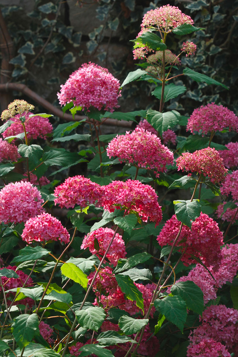 Дървовидна хортензия. Храстът расте разтегнат, с много издънки.