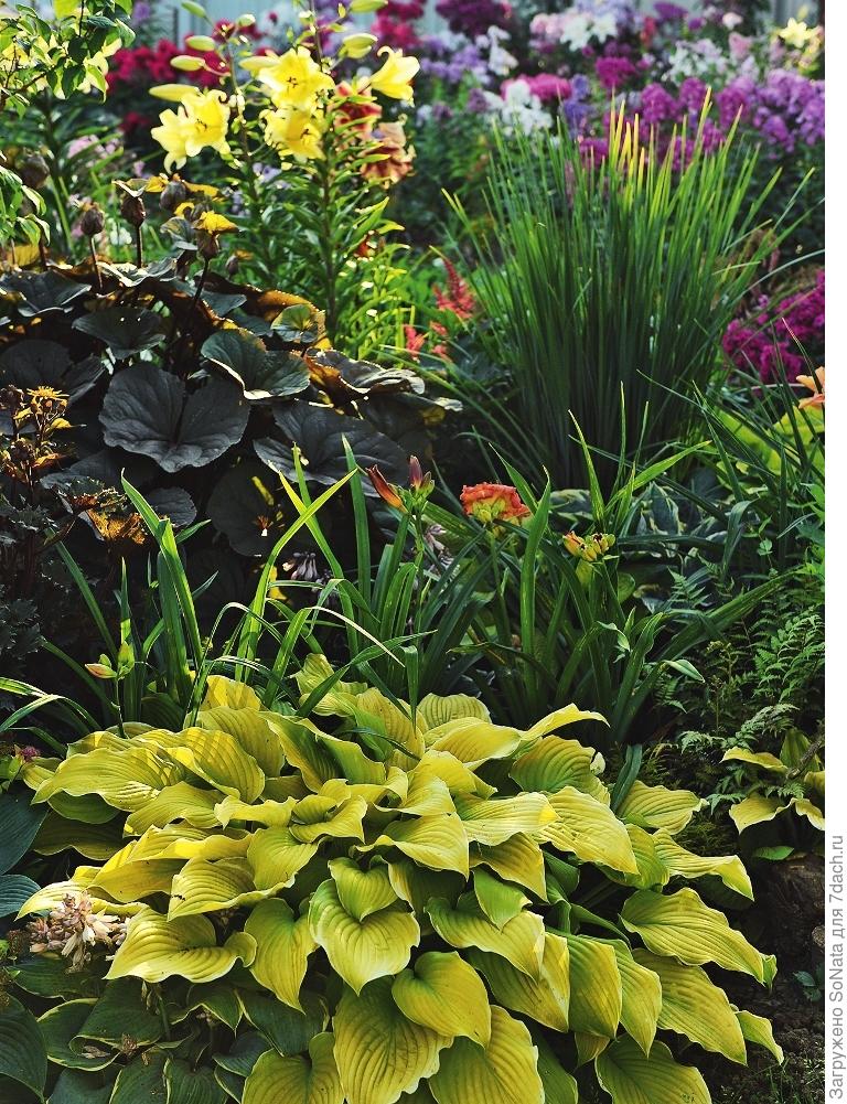 Тези атрактивни цветни лехи могат да подобрят привлекателността на близките цветя. Големите украсени листа от хоста омекотяват, успокояват, балансират растения от различно естество, подобряват красотата на техните съседи, а именно: