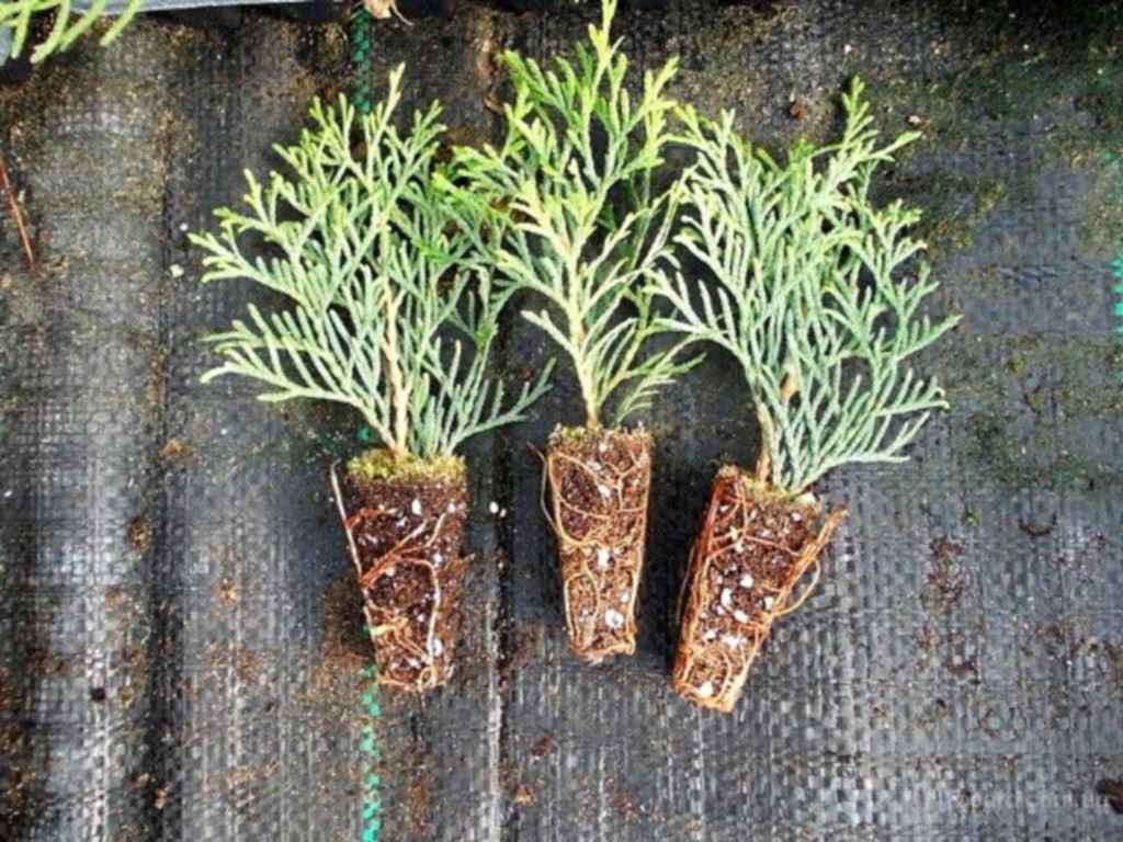 Дори след появата на корените, кълновете на туята все още не са достатъчно силни, за да се засадят на постоянно място. По тази причина те са изпратени да растат. Ако туята е била резници през пролетта, тогава растенията се трансплантират през септември.