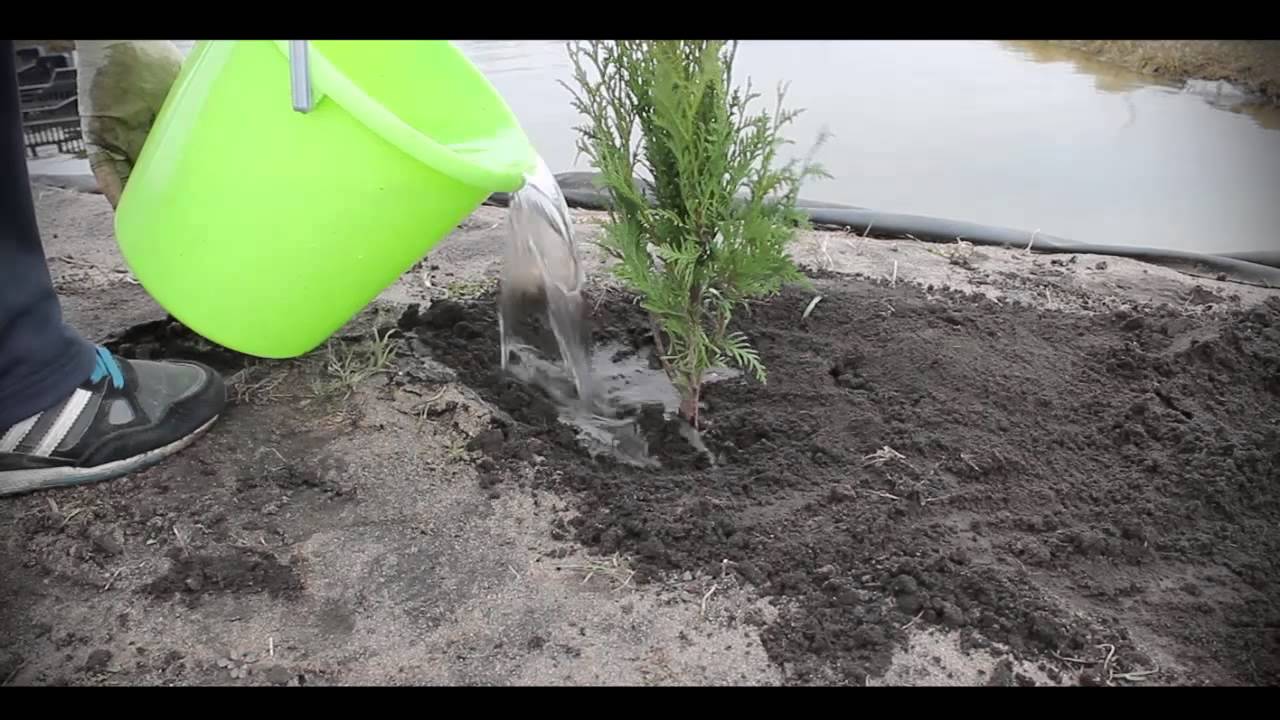 - Трябва да трансплантирате туя чрез претоварване. След това бучката се покрива със слой земя и веднага се полива.