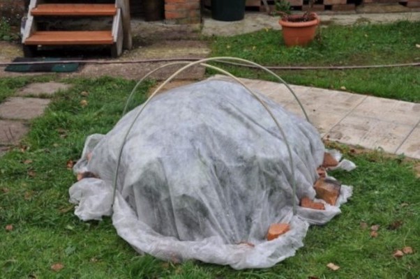 Заслон, направен от този материал, се е доказал добре, когато се използва за млади храсти. Алгоритъм на действията: