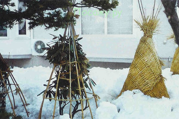 Използването на подслон от чул е от значение само в южните райони. Можете просто да увиете храста с чул, който е завързан с канап.