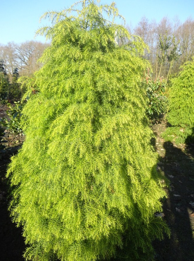 Това е джудже дърво, което има бели издънки в млада възраст. Докато растат, те позеленяват и са изложени на слънчева светлина. Характерна особеност е годишният прираст.