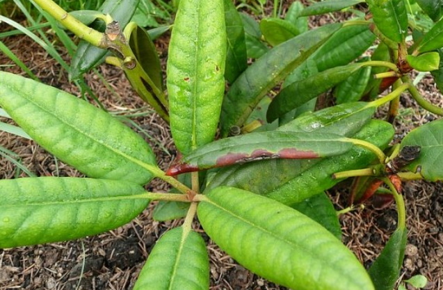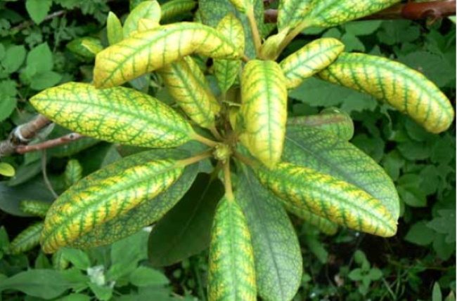 Ако рододендронът се засади върху алкална почва, с времето се появява пожълтяване на листата - така се проявява хлорозата, което води до изсъхване на листата и постепенно до смърт на целия храст.