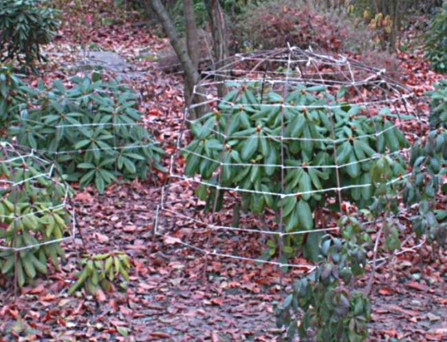 - много силните студове могат да доведат до измръзване на видове рододендрони, които не са устойчиви на студено време - негативните последици ще бъдат предотвратени чрез изолирани защитни заслони и предзимно мулчиране на кореновата зона.
