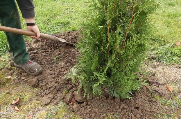 За да осигурите пълното развитие на туя, трябва да подготвите специален почвен състав за разсад. За да направите това, можете да използвате смес от две части копка или листна почва и да вземете една част от торф и пясък. Когато дупката е подготвена, трябва да излеете получената почвена смес в нея.