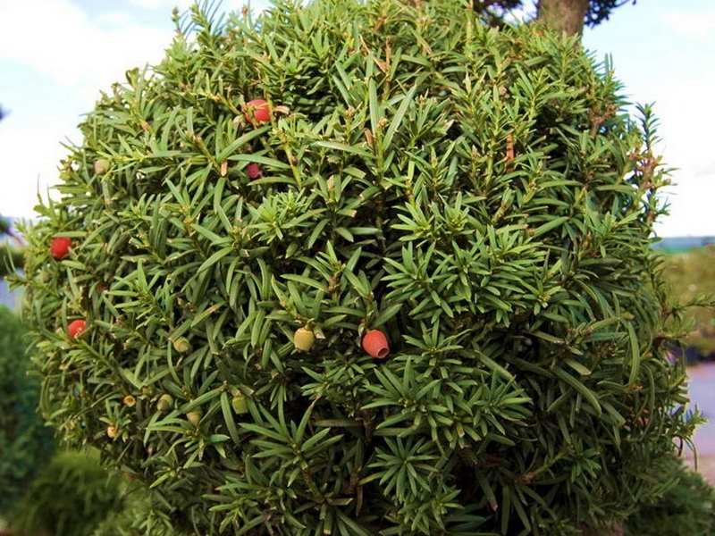 Те също обичат да използват тис като украса. Той съчетава няколко вида иглолистни дървета. Расте бавно. Отличителна черта са малките сферични червени плодове, което го прави отличителен от другите растения. Това не е просто цвете. Освен това е доста известен поради факта, че може да живее до 3000 години.