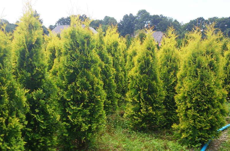 - Холмструп (Thuja Occidentalis Holmstrup) не е много високо дърво, до 10-годишна възраст не надвишава 2 м. Короната е тясна, много гъста. Лесно се реже, расте бавно, не е взискателен към почвата и поливането. Той е универсален в декор решения: може да се използва при създаването на жив плет, в групови и единични композиции;