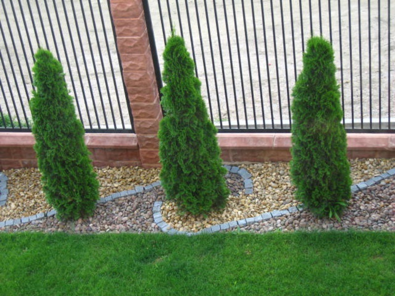 За да се създаде жив плет от туя, те се засаждат в равна линия на разстояние 0,5 м един от друг (в зависимост от сорта)