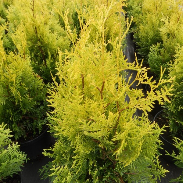 - западната туя е най-често срещаният конусовиден вид. Непретенциозен и зимоустойчив, подходящ за градинарство. Има много форми и разновидности;